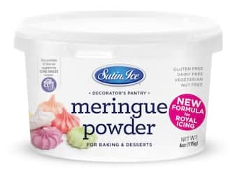 Find the Satin Ice Meringue Powder, 4oz. at Michaels. Perfect for mixing up royal icing, stabilizing marshmallow and whipped cream frosting and making lovely pies and cookies with high, stiff peaks, this meringue powder from Satin Ice is a must have ingredient for any baker's kitchen. 4 oz. (115 g). Vegetarian and gluten free. Dairy and nut free. New formula for royal icing. Modified food starch and dried egg whites. Satin Ice Meringue Powder, 4oz.