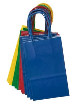 Your gifts will take center stage with these bold, primary-colored bags. Includes assorted primary colors . Heavy-duty kraft paper . • Color: Multicolor • Packaging: Reusable