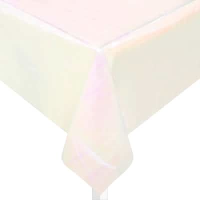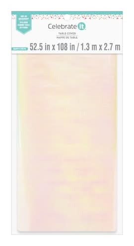 Purchase the 9ft. Iridescent Table Cover by Celebrate It at Michaels. This iridescent table cover is ideal for adding a decorative touch to your tablescape!. 52.5" x 9ft. (1.3m x 2.7m). Polyethylene terephthalate, paper and polyethylene. Spot clean only Size: 52.5" x 9ft.