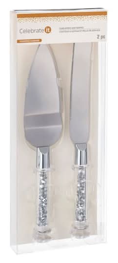Celebrate It Wedding Cake Knife Set, Silver With Bling Embellishments (2 ct)