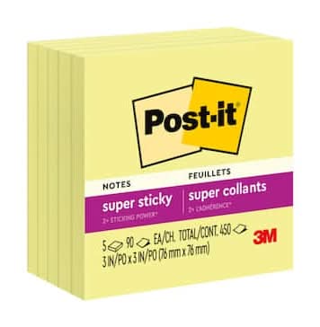 Post-It Super Sticky Notes, 3" x 3", Canary Yellow (5 ct)