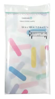 Get this 54" x 108" Ice Cream Party Plastic Table Cover by Celebrate It at Michaels. Protect your table's surface at any celebration with this fun table cover. This plastic table cover with a multicolor sprinkles print on white is great for picnics, school events, birthday parties and more.. 54" x 108" (1.3m x 2.7m). 1 piece