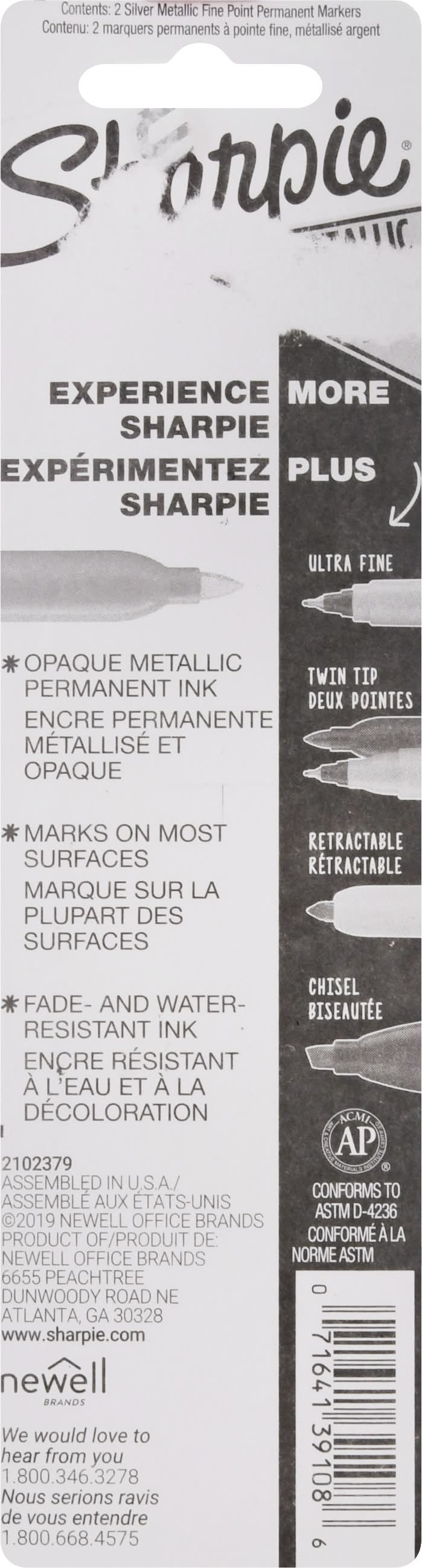Permanent Marker, Metallic Colors, Fine • Color: Silver • Newell Office Brands, 6655 Peachtree Dunwoody Road NE,Atlanta,GA,30328