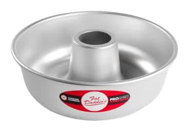 Fat Daddio's Pro Series ring mold pan is designed to heat faster than standard round pans and is ideal for coffee cakes, donut cakes, brioche, sticky buns, savarins, gelatin molds, ice rings and more. Silver colored. Hand wash recommended. Aluminum. Fat Daddio's ProSeries 9" Ring Mold Pan • Color: Silver • Size: 9 inch