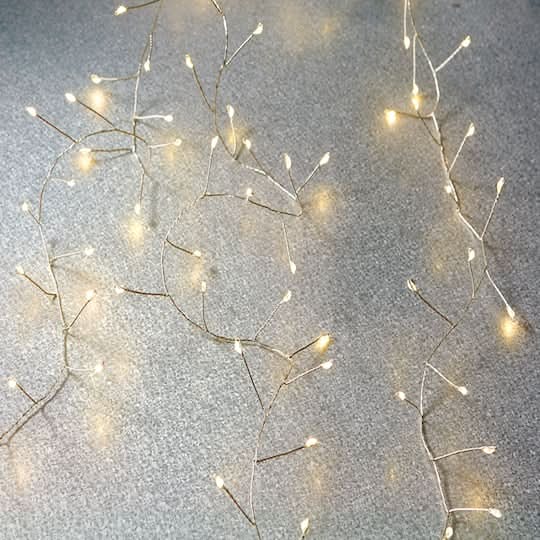 Purchase the 120ct. Warm White LED String Lights Garland by Ashland at Michaels. Add this 8 function LED string lights on silver wire to your home decor. Silver wire with warm white LED lights . 10 ft. (3 m) lighted length . 11 ft. (3.3 m) total length. 1 set . Battery operated . Requires 4 x AA batteries (not included) • Color: Warm white • Size: 10 ft