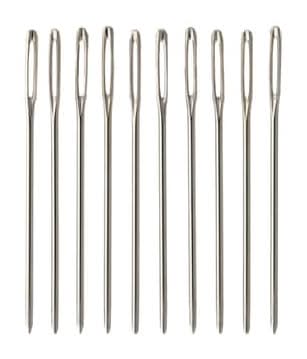 Find the Leather Stitching Needles, 10ct. by Make Market at Michaels. The large eye on these steel needles makes threading quick and easy. Although designed for use with waxed thread for hand stitching leathercraft projects, they are great for use in a variety of craft projects.. 3.74" x 1.77" (9.5cm x 4.5cm) package size. 10 needles . Easy to thread. Ideal for use with wax thread and hand stitching leather • Color: Null • Size: 3.74" x 1.77"