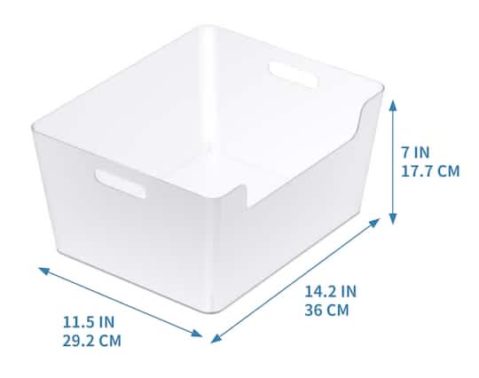 Versatile, lightweight and made from a premium plastic, use this multipurpose bin anywhere you need to add storage and keep clutter out of your space.. overall dimensions. Integrated handles. Premium quality plastic • Color: White • Size: Extra Large
