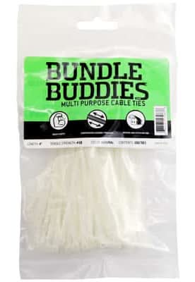 Shop for the Bundle Buddies Natural Multi Purpose Cable Ties at Michaels. These locking cable ties by Bundle Buddies are perfect for securing loose wires and cords. 4" (10.2 cm) each. 100 cable ties. Plastic. ensile strength #18 .Continuous locking thread • Color: White • Size: 4 In