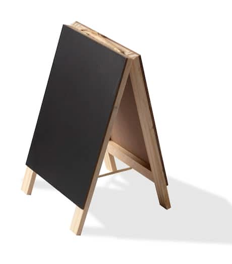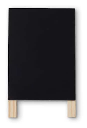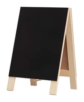 Whether it's displayed at a wedding reception or just placed in your home or office, a chalkboard easel is highly versatile. Stain or paint the wood to match your decor, or just leave it natural. Black chalkboard surface with unfinished wood . Available in multiple sizes . Use with chalk or chalkboard markers Color: Black