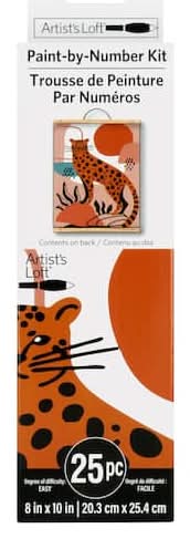 Buy the Cheetah Paint-by-Number Kit by Artist's Loft at Michaels. Complete with brushes, paints, canvas and a wooden display hanger, this kit has everything needed to paint a lovely cheetah image. Cheetah design . 188 numbered selections . Easy difficulty . Display hanger requires some assembly . Conforms to ASTM D-4236 . 1 pre-printed canvas sheet (8" x 11.5", 20.3cm x 29.2cm) 4 brushes (2 detail, 1 small round and 1 small flat)