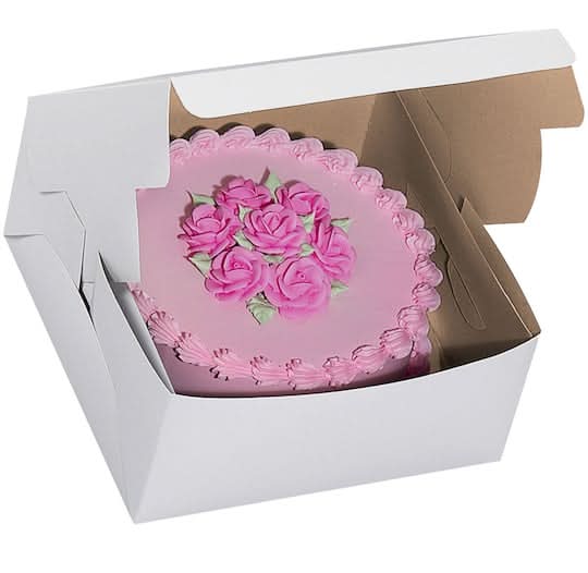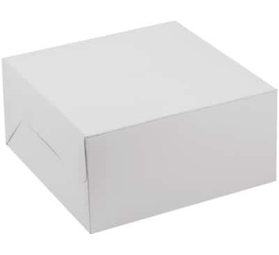 Now that you've finished creating your cake, make sure it gets to your destination safe and sound. White. Available in multiple sizes. Paper. 10" x 10" x 5" (for 8" round cakes)10" x 14" x 4" (for 9" x 13" sheet cakes or 12 cupcakes). 10" x 14" x 4" (for 9" x 13" sheet cakes or 12 cupcakes)12" x 12" x 6" (for 10" round cakes). 12" x 12" x 6" (for 10" round cakes)14" x 19" x 4" (for 12" x 18" sheet cakes or 24 cupcakes) Color: White