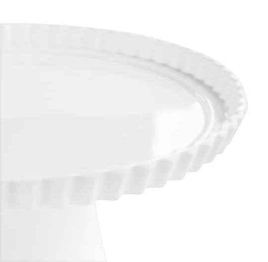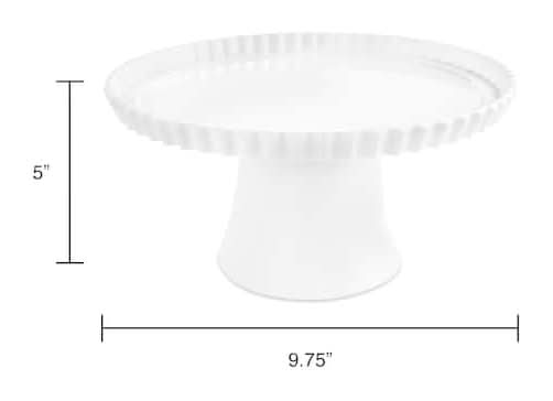 Buy the 10" White Melamine Cake Stand by Celebrate It at Michaels. This round white cake stand by Celebrate It is perfect for displaying at your food table at your party.. 9.75" x 9.75" x 5" (24.765cm x 24.765cm x 12.7cm). Hand wash only. Wash before use. Not microwave safe. Melamine mixed plastic Color: White