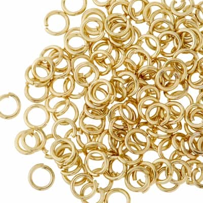Jump rings are perfect for adding clasps or charms to necklaces, bracelets and ear wires. A slight cut in the ring allows them to open and close easily. Gold finish . Available in multiple sizes . 144 jump rings . Nickel free. Iron Color: Gold