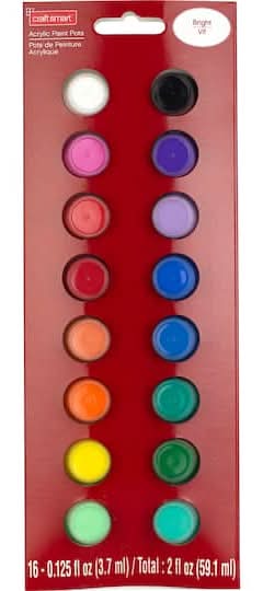 Craft Smart Bright Acrylic Paint Pot Set, 11.62X4.25X1 in, Assorted (0.12 fl oz, 16 ct)