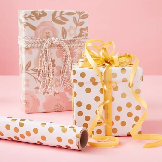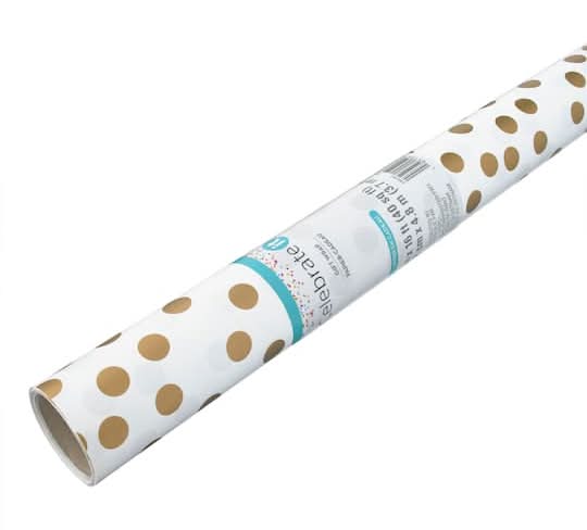 Get the Gold Dots Wrapping Paper By Celebrate It at Michaels.com. Adorned with gold-colored dots, this paper roll by Celebrate It is perfect to wrap presents for your loved ones. White with gold dots . 30" x 16ft roll size . 1 roll. 80 gsm art paper • Color: White • Size: 30" x 16 ft