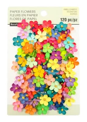 Buy the Bright Multicolored Mini Paper Flower Embellishments By Recollections Jump into the spring season with these flower embellishments by Recollections. Includes assorted colors. 1.5 cm. 120 flowers • Color: Multi • Size: 1.5 cm