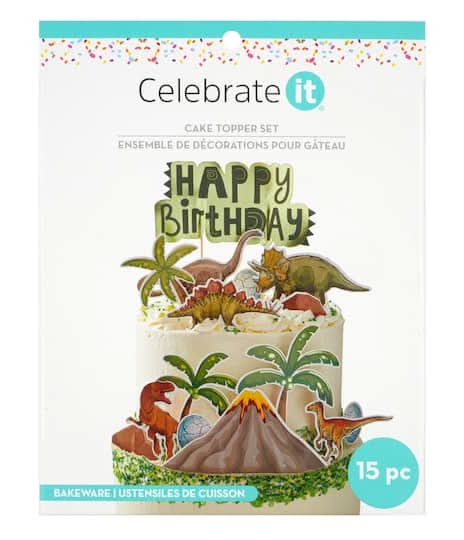 Get this Dinosaur Birthday Cake Topper Set by Celebrate It at Michaels. Create a fun dinosaur-themed cake for a loved one's birthday using this cake topper set. It includes 15 picks, perfect for embellishing a tiered cake. Dinosaur theme . 15 pieces . Food safe . Toppers are for decorative use only . Do not place in oven or microwave . Paper, wood and plastic Color: Multi