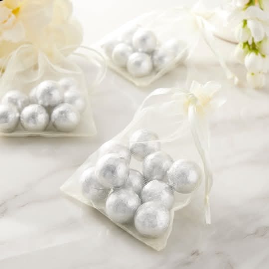 Use these favor bags to create a uniform look for your wedding or party favors and add signature accents to your tables. Available in assorted colors. 3" x 4" drawstring bag. Package of 50. Celebrate It Occasions Organza Bags Color: Ivory