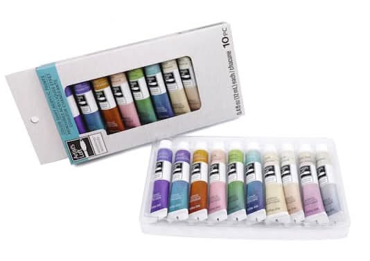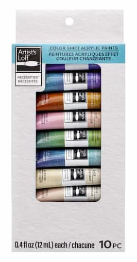 Buy the Necessities Color Shift Acrylic Paint Set by Artist's Loft at Michaels. Take your painting to the next level with this Color Shift paint from Artist's Loft! Each color in this set will shift at different light angles while providing great coverage and a smooth consistency. Includes 10 assorted Color Shift hues . 0.4 fl. oz. (12 mL) tubes . Water-based acrylic paint . Colors shift at different light angles . High quality pigments . Multi-surface . Necessities Color Shift Acrylic Paint Set by Artist's Loft Color: Assorted