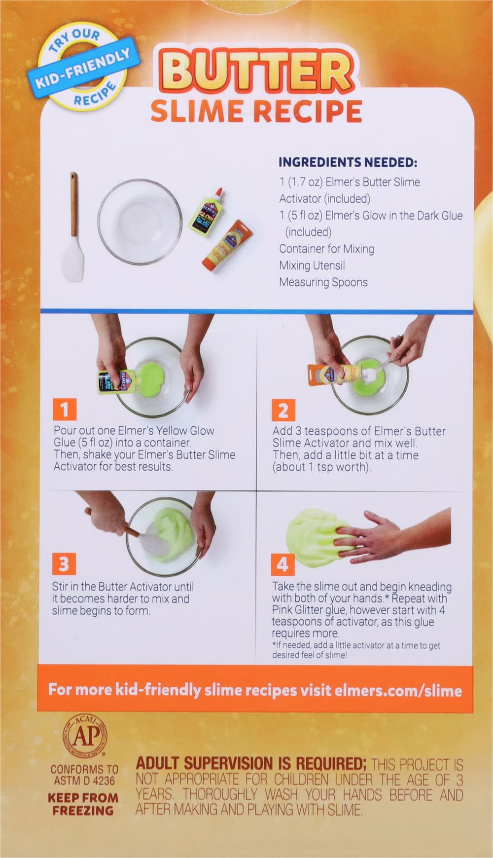 Yellow Glow in the dark Glue Pink Glitter Glue Butter Slime Activators