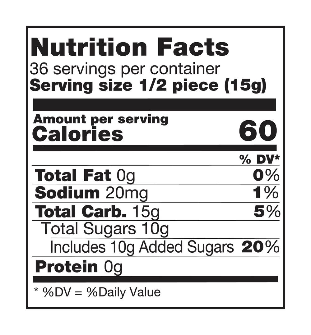 Ingredients: Sugar, Glucose, Syrup, Buffered Lactic Acid, Contains 2% or less of Natural & Artificial Flavor, Red 40.