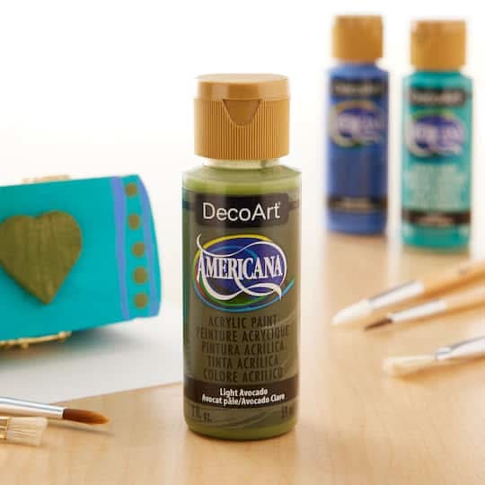 All-purpose, premium-quality acrylic paint is perfect for decorative painting, home decor projects and general craft painting projects. Available in multiple colors. 2 oz. (59 mL). Water-based. Matte finish. Nontoxic . Conforms to ASTM D-4236. Color: Light avocado