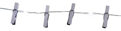 Purchase the Warm White LED Iridescent Clip Lights by Ashland at Michaels. Shiny and beautiful, these silver iridescent clip lights are perfect to jazz up your home decor. You can hang these lights above your mantel and secure photographs, greeting cards or cutouts in the clips. Warm white lights on silver wire with iridescent clips . 14.5 ft. (4.4 m) . 1 set . Requires 3 x AA batteries (not included) . 6 hours on, 18 hours off timer . For indoor use only . 45ct. Warm White LED Iridescent Clip Lights by Ashland