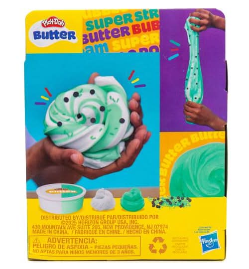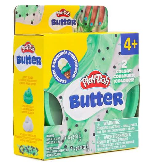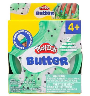 Buy the Play-Doh Green & White Mint Chocolate Chip Scented Butter Compound at Michaels. This resealable jar of fun holds 5 ounces of creamy, smooth, green and white compound that smells like mint chocolate chip ice cream!. 5 oz. (141.7 g). Includes assorted polymer sprinkles. Resealable container. For ages 4 and up