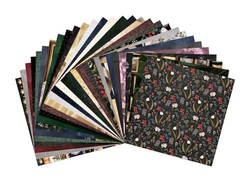 Add notes of vintage luxury to your handmade paper projects using this paper pad filled with gorgeous foil accented sheets. Includes assorted colors and designs. (30.4cm x 30.4cm) sheet size. 66.7 lb. / 180 gsm. 29 designs, 2 of each design. Acid free.