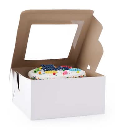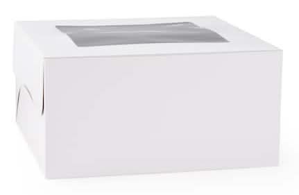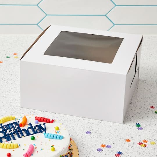 Shop the Window Cake Box by Celebrate It at Michaels. Sweet treats deserve a sweet display. This window box is a whimsical way to display your cake at home, or for giving it to a friend. White. Available in multiple sizes. Paper and plastic. 12" x 12" x 6" (30.48cm x 30.48cm x 15.24cm) for 10" (25.4 cm) round cakes19" x 14" x 4" (48.26cm x 35.56cm x 10.16cm) for 12" x 18" (30.48cm x 45.72cm) sheet cakes or 24 cupcakes • Color: White • Size: 12x12x6 in