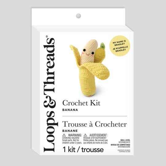 Purchase the Intermediate Banana Amigurumi Crochet Kit by Loops & Threads at Michaels. You can make Bradley the Banana come to life with the included instructions and materials.. Intermediate skill level . Estimated time to complete project: 8 hours . Spot clean with damp cloth as needed . Instruction sheet included
