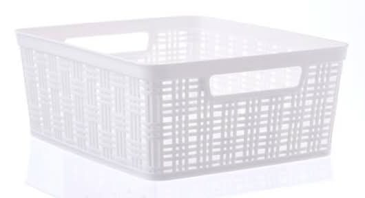 Keep you home or office neat and tidy with this storage basket. The sturdy plastic construction has an open weave design with built-in handles for easy access and organization.. Available in multiple sizes. Polypropylene. Small: 10.2" x 7.9" x 4.1" (25.9cm x 20cm x 10.4cm)Medium: 14.2" x 12" x 5.5" (36cm x 30.4cm x 13.9cm). Medium: 14.2" x 12" x 5.5" (36cm x 30.4cm x 13.9cm)Large: 14.2" x 12" x 8.7" (36cm x 30.4cm x 22.1cm) Color: White