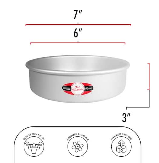 Seamless and straight-sided, with a rolled rim for easy handling, this anodized aluminum cheesecake pan with a removable bottom from Fat Daddio's Pro Series is a must-have baking tool for any kitchen. Designed for cheesecakes and built to last through daily use, this pan is ideal for upside-down cakes, ice cream cakes and other desserts where the top needs to be preserved. Silver. 6" x 3" (15.2cm x 7.6cm) interior size. Temperature rated up to 550°F (285°C).