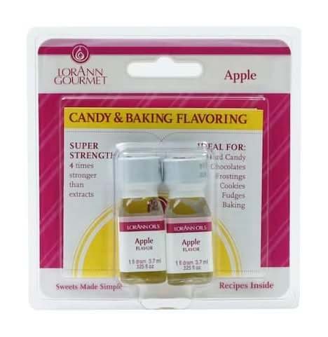Buy the Lor Ann Oils Apple Flavor, 2ct. at Michaels. Make mouthwatering candies, pies, cakes cookies and more with the Lor Ann Candy and Baking Flavoring. 0.125 fl. oz. (3.7 mL) bottle size. 2 bottles. 4 times stronger than extracts. Substitute 1/4 to 1/2 teaspoon for 1 teaspoon of extract. Gluten-free and Kosher certified. LorAnn Oils Apple Flavor, 2ct. Flavor: Apple
