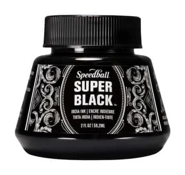 Buy the Speedball Super Black India Ink at Michaels. Made from highly opaque, carbon black pigment, this ink offers excellent reproduction quality on absorbent surfaces with optimum lightfastness.. Available in multiple sizes. Offers optimum lightfastness that withstands fading . Easily applied by pen, brush, steel brush or airbrush. Speedball Super Black India Ink Color: Black