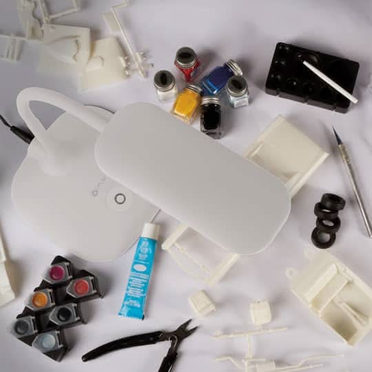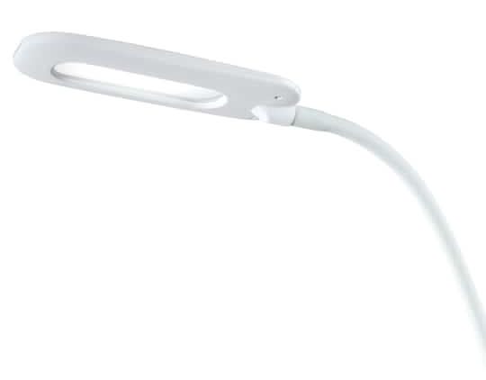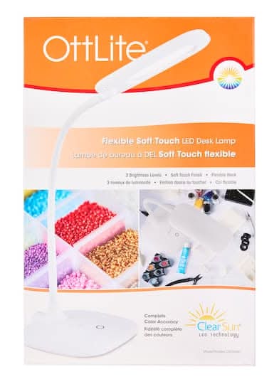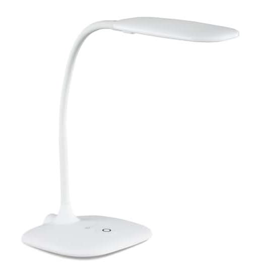The Ott Lite Flexible Soft Touch LED Desk Lamp is perfect for your office, crafting table or dorm room. flexible, rubberized neck. 3 brightness settings. Plastic, steel, and rubber • Color: White • Size: 13.5 in