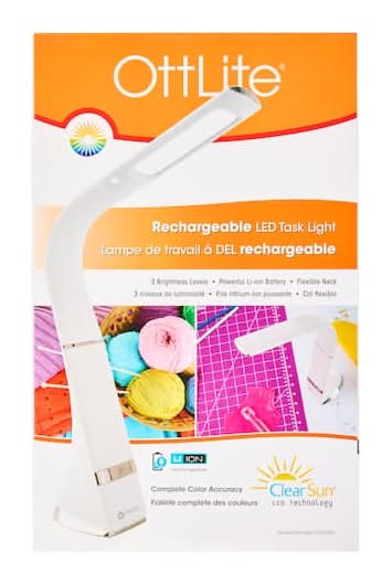 Find the Ottlite Craft Anywhere Rechargeable LED Task Lamp at Michaels. Now you can enjoy reduced eyestrain and crisp Ott Lite Clear Sun illumination all over your home with this sleek rechargeable lamp. White. Height adjusts from 10" (25.4 cm) to 18.75" (47.625 cm). 3 brightness settings. USB rechargeable lithium ion battery provides hours of use between charges. Plastic, glass, steel, and acrylic Color: Null