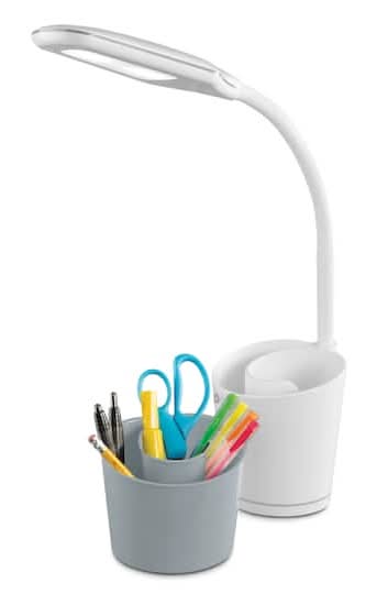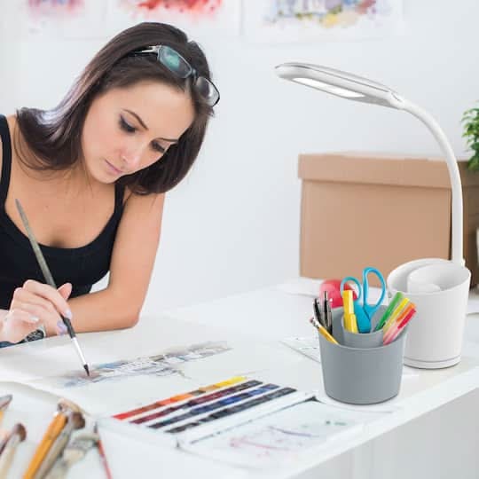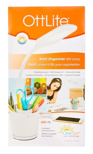 Find the Ottlite LED Lamp Swirl Organizer at Michaels. Get organized, stay charged and see with amazing clarity and comfort! White. Height adjusts from 11.25" (28.575 cm) to 23.25" (59.055 cm). 3 brightness levels with touch-activated control. Charge devices with the 5V, 2.1A USB port – fully charges smart phones, tablets and more. Plastic, steel, and printed circuit board Color: Null