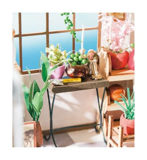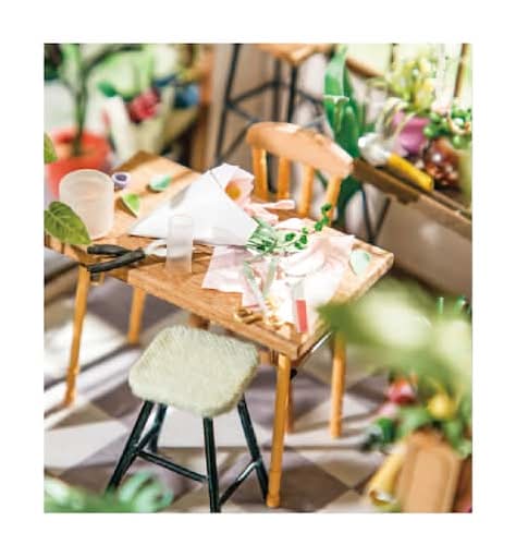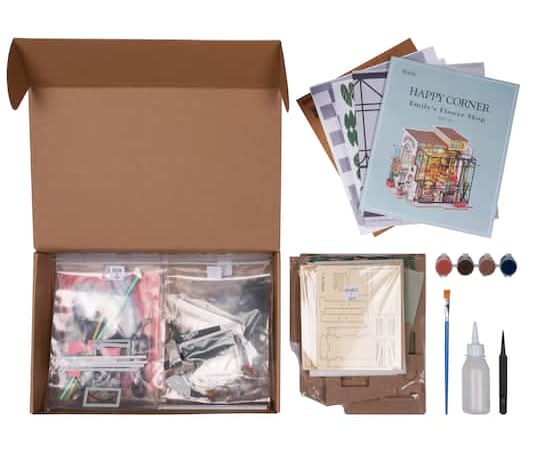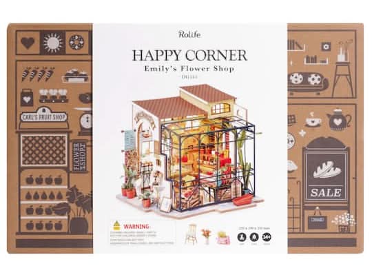 Find the Rolife Emily's Flower Shop DIY Miniature House Kit at Michaels. Craft together plants and glass windows piece by piece. Make mini furniture with your own hands. 8.27" x 7.48" x 8.66" (21cm x 18.9cm x 21.99cm) assembled size. Kit Design: DG145. Scissors needed. LED lit. Lithium batteries required ((CR2032, 3V.). Conforms to ASTM D-4236. Rolife Emily's Flower Shop DIY Miniature House Kit