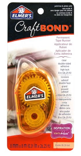 Elmer's CraftBond Permanent Tape Runner offers a dependable, high tack bond essential for various crafting needs. Designed for secure adhesion, this tape runner works effectively on photos, paper, and fabric, making it an ideal choice for paper crafts. Notably, it is portable and straightforward to operate, enhancing its convenience for users. The runner is also refillable and features an easy change cartridge system, adding to its practicality. Additionally, the tape is acid-free and safe for use with photos, ensuring that it does not cause damage over time. Its mess-free application makes it frequently used in scrapbooking, card making, and other craft projects. Color: Clear
