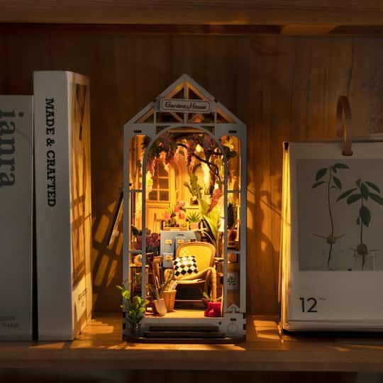Buy the Robotime Rolife DIY Garden House Book Nook Craft Kit at Michaels. Create a miniature garden shed to bring light and life to your bookshelf nestled between your favorite books with this DIY garden house craft kit. This book nook kit is a great instruction-led activity for a quiet evening or a sweet gift for the avid crafter. Garden house miniature shed . 8" x 4.33" x 9.49" (20.3cm x 11cm x 24.1cm) assembled size . 176 pieces . LED lit . 5 hours estimated assembly time . Plywood, paper and plastic . Robotime Rolife DIY Garden House Book Nook Craft Kit Size: 14Y+