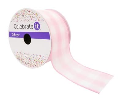 Shop for the 2.5" x 25ft. Light Pink Buffalo Check Wired Ribbon by Celebrate It Decor at Michaels. Great for embellishing decor items, gift wrap, treats, gift baskets and more! This faux linen ribbon has a buffalo check pattern.. 2.5" x 25ft. (6.4cm x 7.6m) . Wired, selvage edge . Polyester. 2.5" x 25ft. Light Pink Buffalo Check Wired Ribbon by Celebrate It Decor Color: Light pink