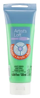 Get the 4oz. Acrylic Paint by Artist's Loft at Michaels. Available in a spectrum of colors at an affordable price, this paint is fast drying, water based and extremely versatile, ideal for use with many painting techniques on a variety of surfaces. Available in multiple colors. 4.06 fl. oz. (120 mL). Academic level 1. Smooth consistency. Water-based and extremely versatile Color: Light green
