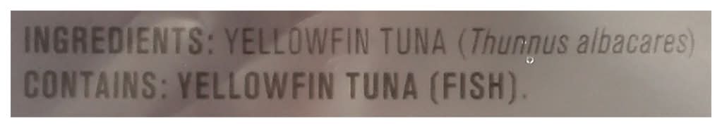 Ingredients: Yellowfin Tuna (Thunnus Albacares)