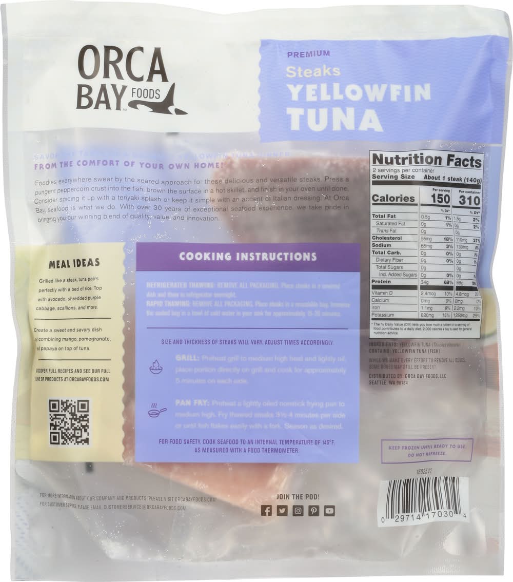 Yellowfin Tuna, Premium, Steaks • Brand: Orca bay • Number of servings: 2