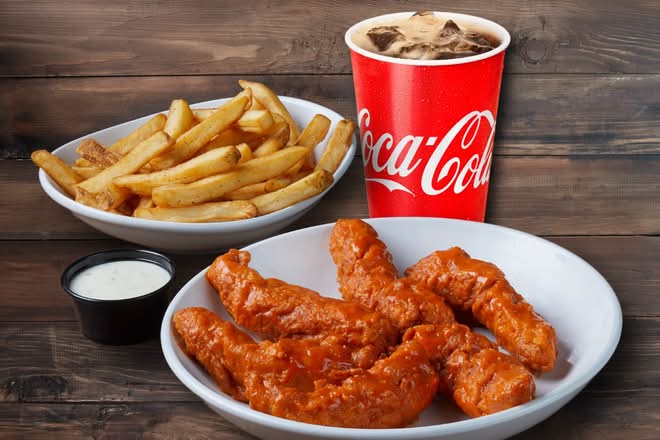 An order of our famous Zingers®, side of fries and a fountain drink to go.