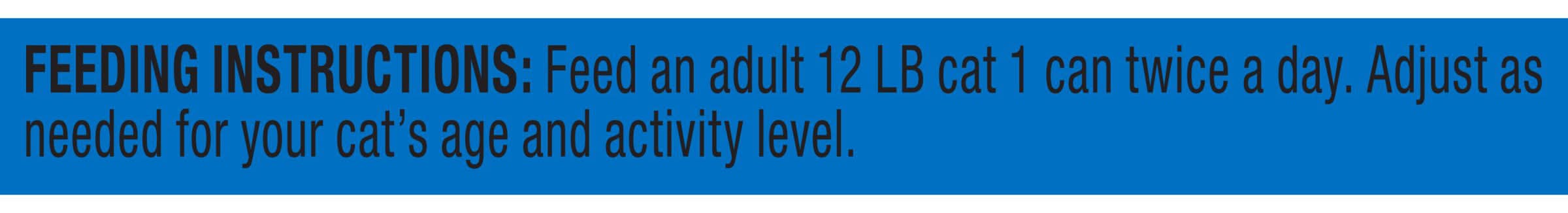 Keep in a cool, dry place. feed twice daily (2). feeding instructions: feed an adult 8-10 lb cat or 3 lb kitten 1 can twice a day. adjust as necessary for your cat's age and activity level.