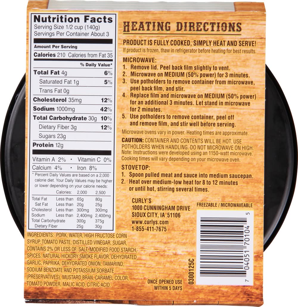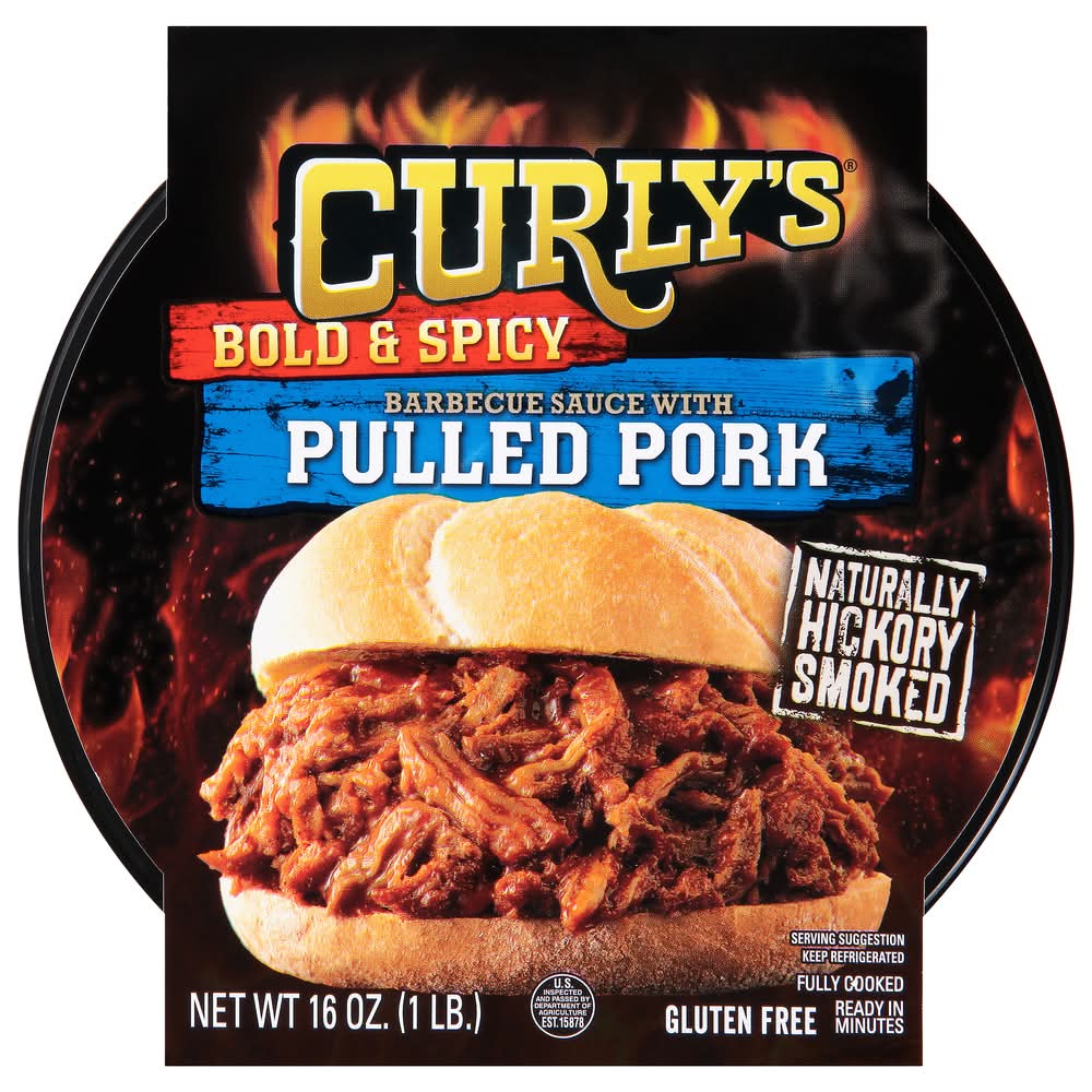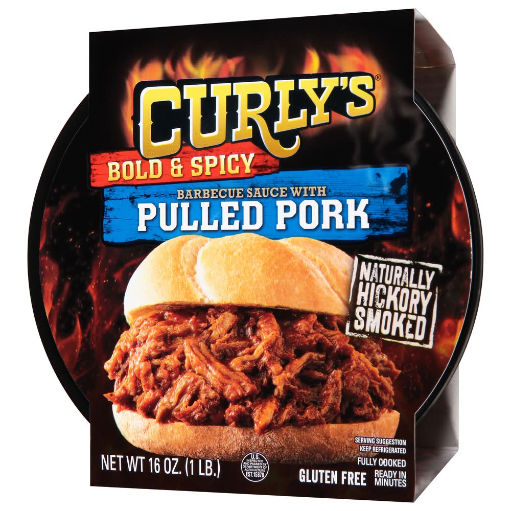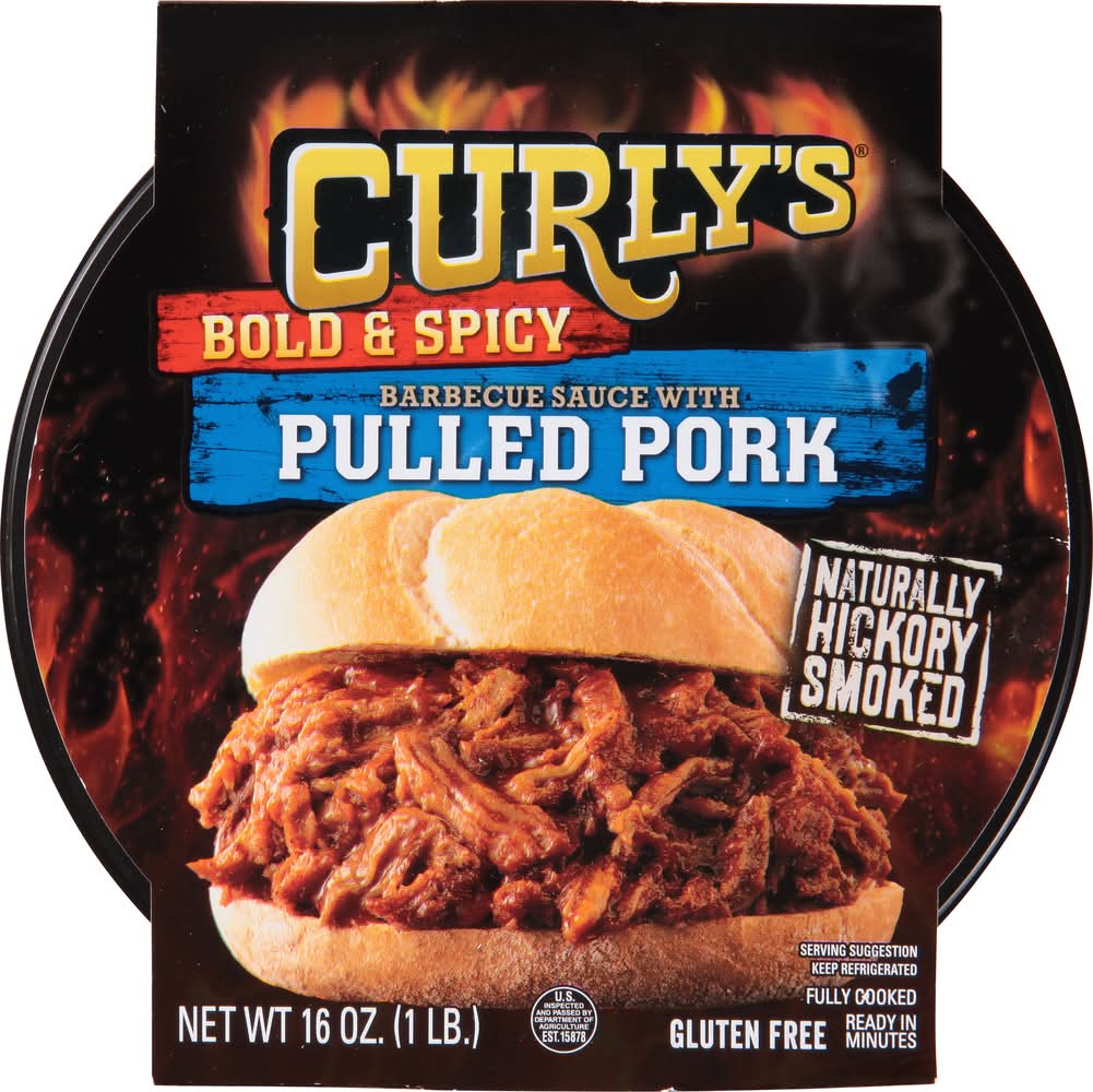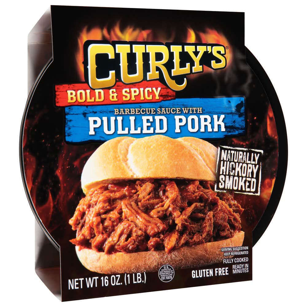 Curly's Bold & Spicy Barbecue Sauce With Hickory Smoked Pulled Pork (16 oz)