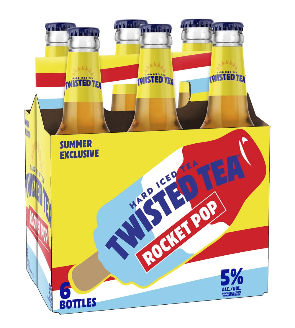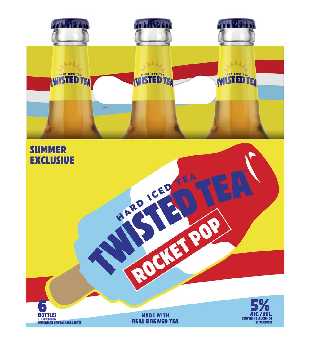 Twisted Tea Rocket Pop is a limited release, refreshingly smooth hard iced tea made with real brewed tea and a twist! The unique Rocket Pop flavor is a fusion of Cherry, Lemon-Lime, and Blue Razz. What better way to celebrate summer than with a six pack of Rocket Pop Twisted Tea. No carbonation for easy drinking. 5% ABV. • Flavor: Rocket pop • Pack size: 6