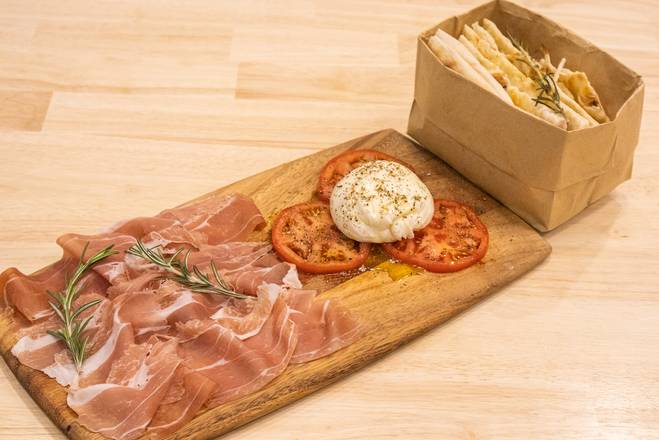 Fresh Burrata Cheese, Tomatoes, Prosciutto di Parma.